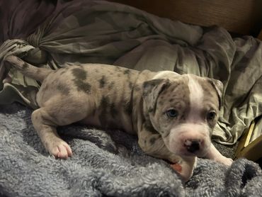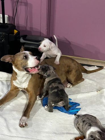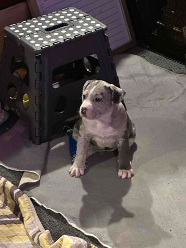 We breed FREEDOMWALKER BULLY ENTERPRISES with love and care. Smart athletic 80 lbs champagne tri-Merle Classic American Bully